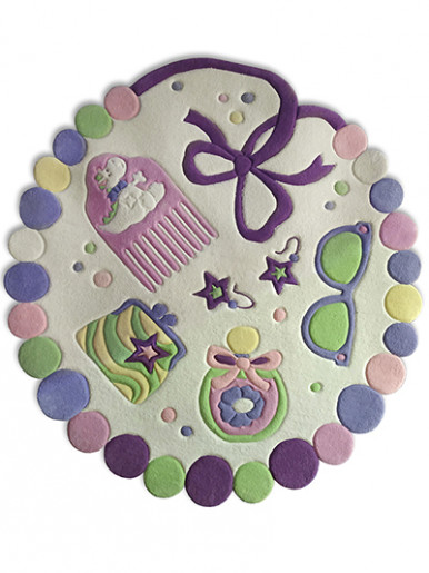 Beaded Girls Rug The Beaded Girls rug is crafted in the shape of a slightly flattened circle with the perimeter adorned with the depiction of the most essential accessories for young fashionistas - beads.