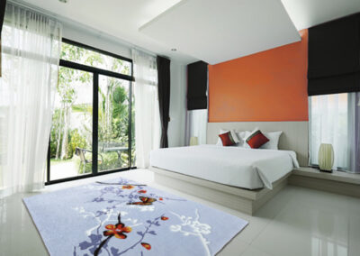This exclusive floral carpet with hibiscus blooms was crafted by the talented artisans of Carpet Studio