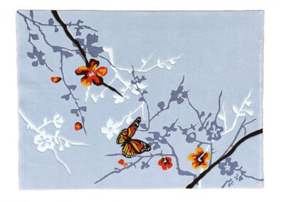 Carpet with Two Textures – Sakura and Butterflies The carpet design was created by the designers of the Carpet Studio, inspired by a photo of artistic textured plaster on Pinterest (link to our Pinterest channel). This is yet another idea for carpet design. To give the carpet a sculptural quality, two different textures and three pile heights were used.