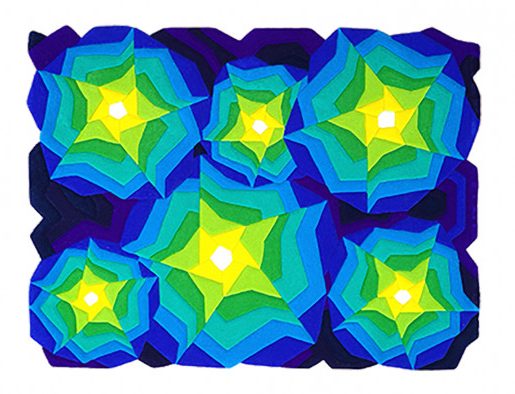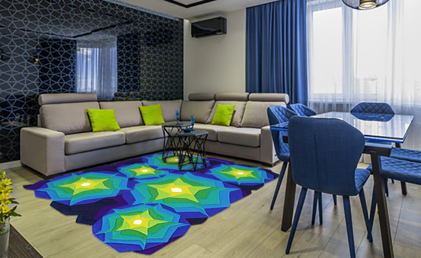 This vibrant, hand-tufted rug by Carpet Studio combines playful geometric energy with meticulous craftsmanship. Crisp white stars flow into bright geometric fields and finish with intentionally irregular edges, creating a dynamic statement piece suitable for contemporary living rooms, children’s rooms and creative interiors.