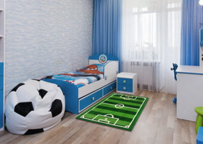 This carpet, featuring a football field design, is the perfect addition to a young football enthusiast’s room. Made from eco-friendly British wool, it is hypoallergenic and safe.