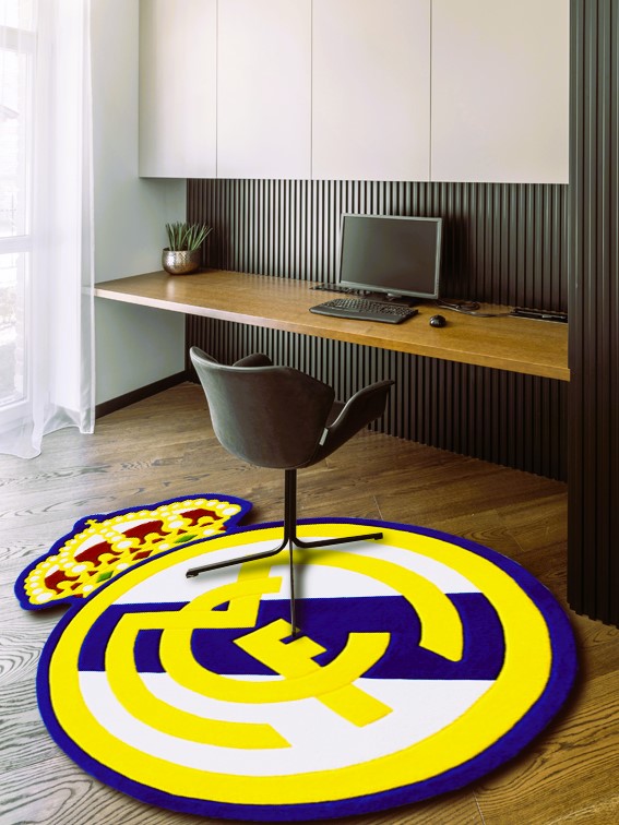 The Real Madrid Rug is more than just a decorative element – it’s a symbol of loyalty to one of the world’s most legendary football clubs. Its shape precisely follows the contours of the Real Madrid emblem, including the finely sculpted crown at the top. The crisp white base, deep royal blue, and golden accents perfectly reflect the club’s noble identity.