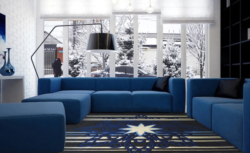 The snowflake motif is executed in a sophisticated gradient of blues – a color often used as an accent in neoclassical décor and one of today’s most popular interior design trends. This combination makes the rug suitable for spaces with neutral or cool-toned color schemes, enhancing both modern and classic environments.
