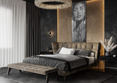 This carpet features a stylized image of the famous Italian actress and singer Sophia Loren. The design consists of dark lines of varying thickness on a white background, forming the overall image. A similar design concept can be found here.