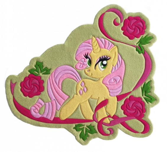 Butterfly-Shaped Carpet for a Girl This irregularly shaped carpet features an incorporated butterfly extending beyond its edges. The irregular shape of the carpet creates a large, warm play area while keeping the carpet's overall size and cost manageable. Made from eco-friendly, natural English wool, the carpet is designed to fit perfectly next to a child's bed with its long side (as shown in the visualization), preventing a child's bare foot from touching a cool floor.
