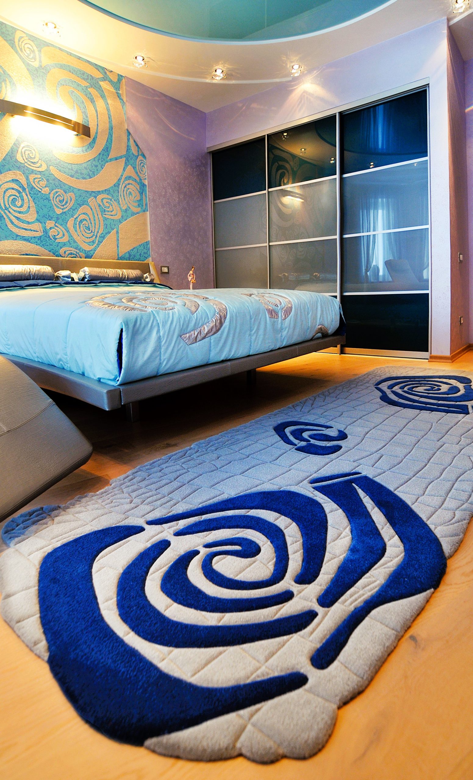 The client ordered the rug as an interior accent – it had to echo the textured plaster wall behind the headboard. Carpet Studio designers translated this wall motif onto the rug’s surface, while keeping the base with the snake skin texture effect. A similar approach was used in our Grey Rug with 10 Shades, where geometry and color transitions also played a key role.