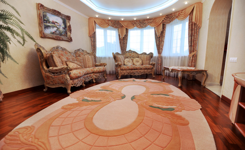 Dining area rug “Exclusive” is a great example of how a unique interior piece can be created entirely remotely.