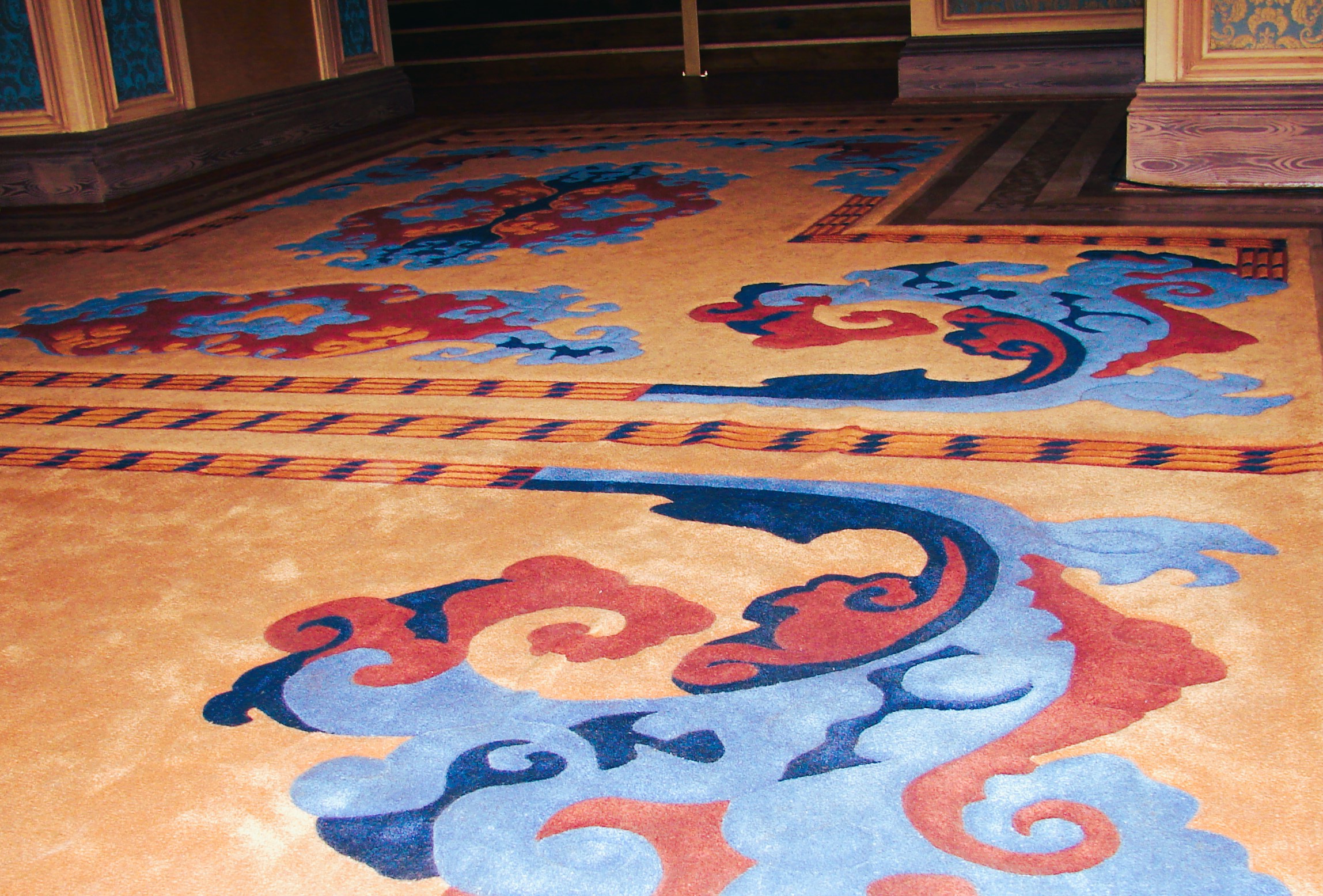 One key design challenge was that the rugs needed to appear as though they were “built into” the floor — perfectly integrated with the parquet borders. The rugs were to be laid without any parquet underneath, so absolute precision in contour and dimensions was essential.