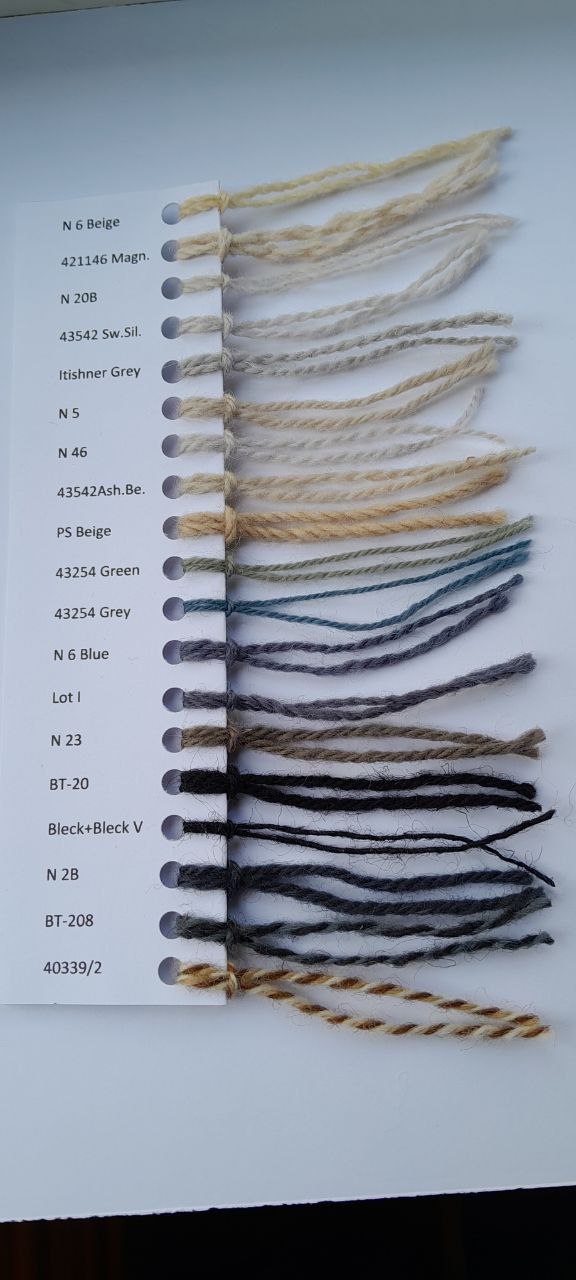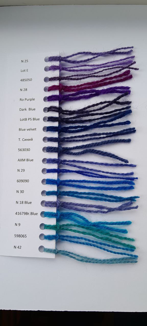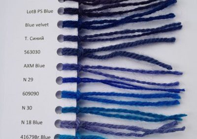 We offer around 170 colors, available even in small quantities. Price – 12 EURO/kg when shipped from Ukraine, or 15 EURO/kg when shipped from Belgium. A complete yarn sample set is also available for just 8 EURO.