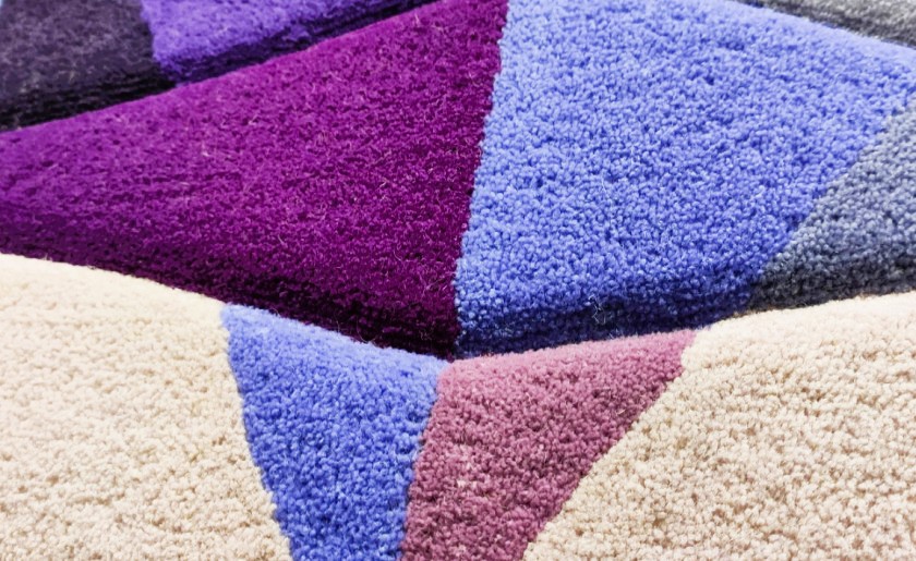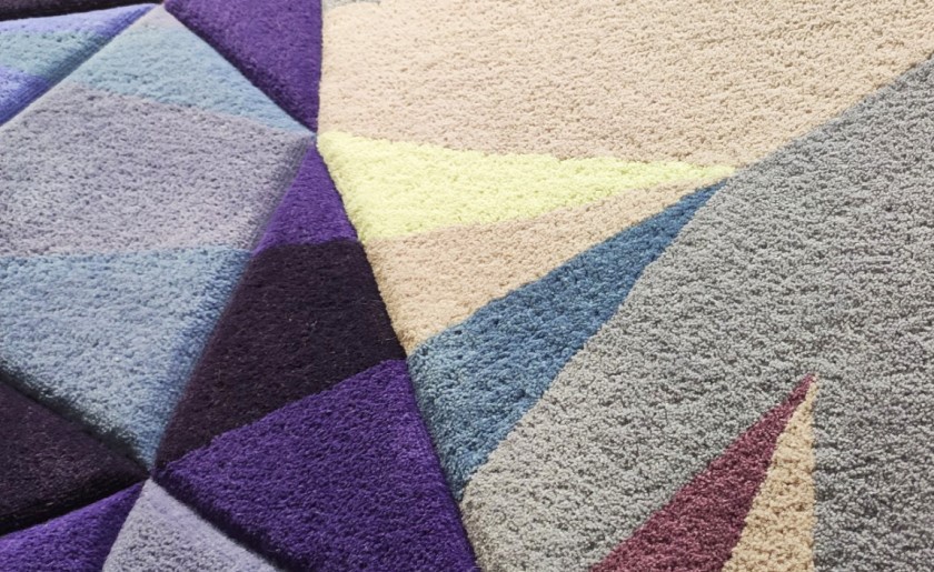 Каждая грань ковра прорисована с точностью, достойной мастера-ювелира. Филигранная ручная тафтинговая работа и глубокая рельефная стрижка создают эффект объёма, будто свет скользит по огранённым кристаллам. Оттенки английской шерсти — от насыщенно-фиолетового до мягкого лавандового — плавно переходят друг в друга, создавая живую игру света и теней.