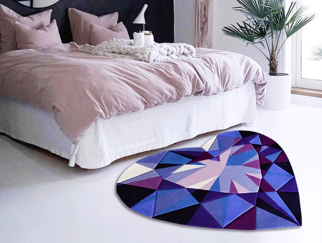Фиолетовый ковер Аметист в форме сердца — это не просто напольное покрытие, а ювелирное произведение искусства, вдохновлённое магией природного камня. Его дизайн передаёт прозрачность и глубину аметиста, блеск граней и изысканную форму сердца — символ любви и совершенства.